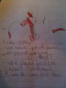Han valde denna period att arbeta med engelska. Och vad är mera engelskt än att rita Kratos och ha som toppbild till sin redogörelse över vad man gjort under dagen 🙂
