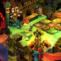 Världen och berättelsen serveras som ett jämntjockt disigt töcken som lindar dig i rejäla sammetsgardiner av bakgrund och detaljer. Bastion har en rik omvärld och Supergiant Games är inte blyga att fullständigt blända mig med intryck från den. På ett smart förpackat och självklart sätt berättas det i förbifarten om allt från forna krig, orientaliska örtkryddor och flora och fauna. Jag bävar inför tanken på hur mycket material som måste ha författats till spelet.