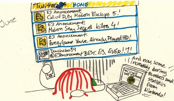 Under förra årets E3-mässa visade Nintendo upp uppföljaren till Wii. Det slutade med att alla, inklusive jag, lämnades helt förvirrade med massor av obesvarade frågor. Under de första timmarna var många av oss inte ens riktigt säkra på om det faktiskt var en helt ny konsol man visade upp, eller bara ett tillbehör. Under det här årets presskonferens ser jag fram emot att se Nintendo presentera själva konsolen lite bättre, och inte bara fokusera på pekskärmskontrollen. Jag ser fram emot att få veta mer om konsolens hårdvara, och hur den presterar jämfört med Xbox 360 och PS3. Jag ser även fram emot en officiell prislapp. Det har hänt mycket sedan 2005, så att slänga ihop en konsol som är ungefär 25% starkare än PS3 för under 3000kr ska inte vara någon omöjlighet.