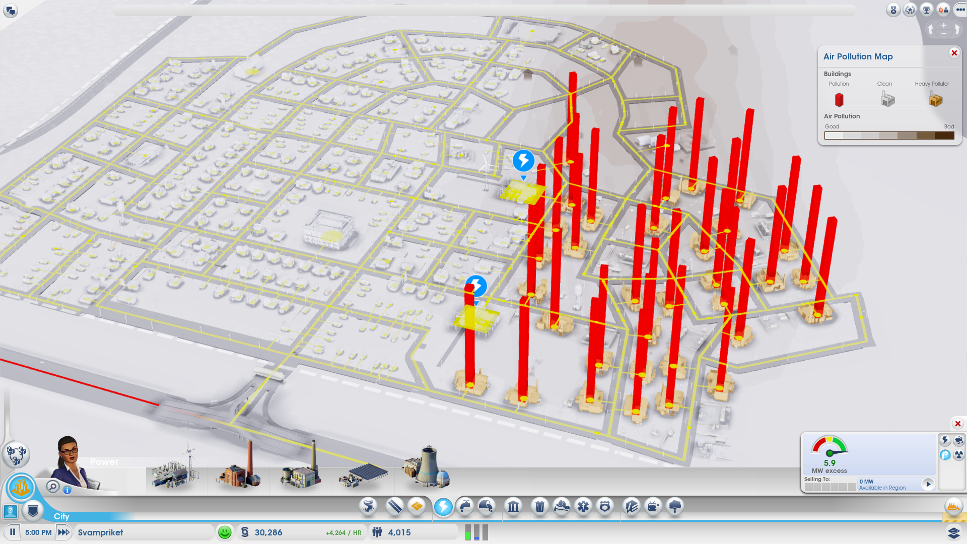 En annan viktig funktion med att vara online är också att all handel påverkar all annan handel. Om du säljer olja till andra städer påverkar det oljepriset i hela världen. Jag undrade hur det fungerar. ”Vi har undersökt hur sånt fungerar i verkligheten, tillgång och efterfrågan, och använt oss av det i SimCity, givetvis med lite justeringar – det är ändå ett spel” förklarar Katsarelis.