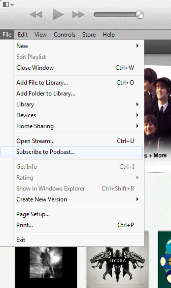 Gå in i affären (store) och klicka på File och sen Subscribe to podcast.