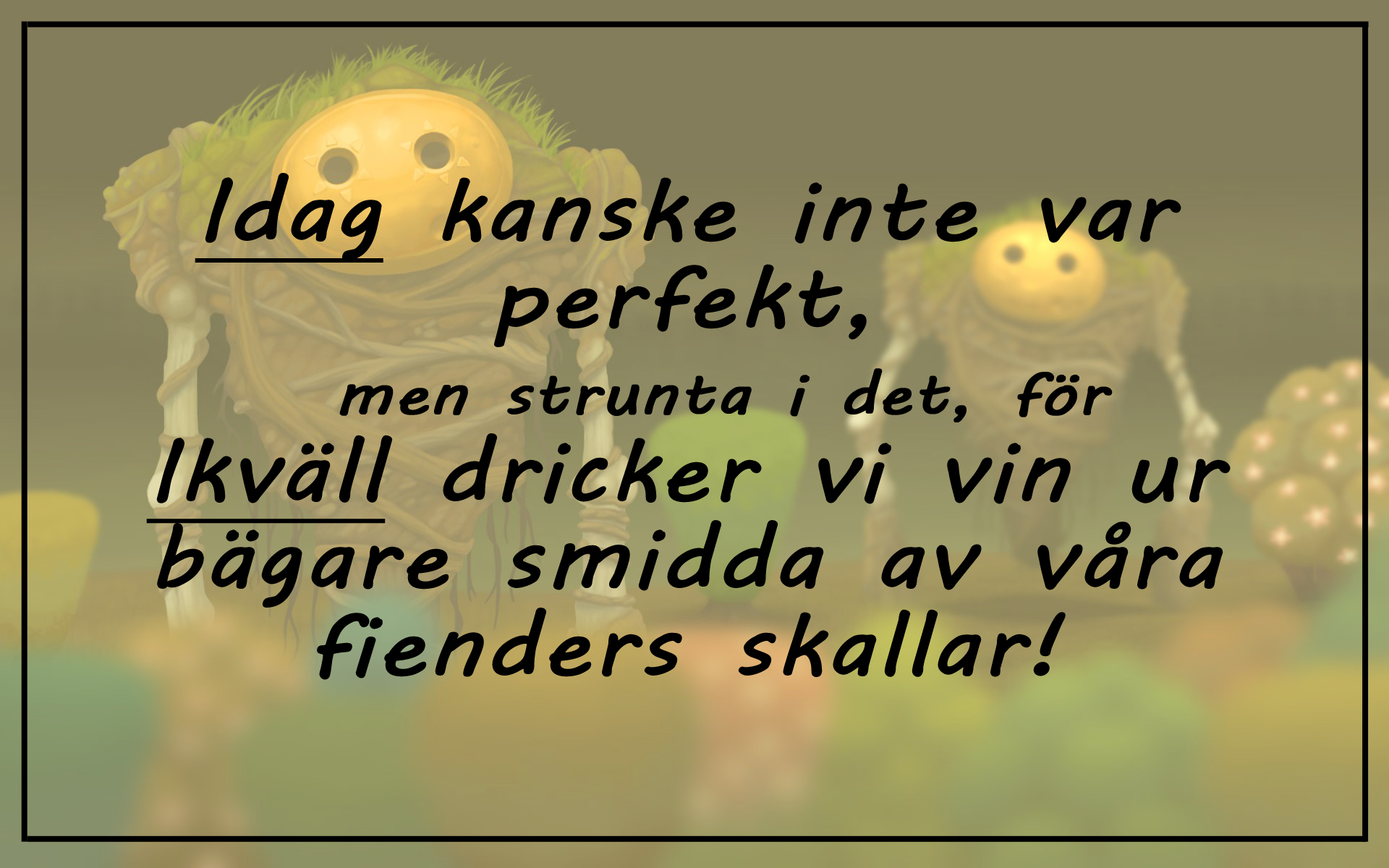 Hihihi, jag lånar den bilden med fienders skallar och har som pausbild på min iPad.