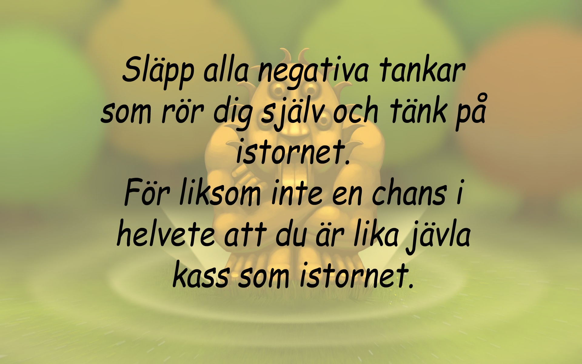 En annan sak jag älskar är alla dessa visdomsord, som ju vägrar bli icke-aktuella som pikanta inredningsdetaljer. Text. Alltid denna text. Aaaah, att bli uppmanad att carpe diem:a om man så bara så gå på muggen hemma hos en polare. Åh titta där, på handfatet ligger det små stenar som uppmanar mig att njuta av livet och att familjen är det viktigaste som finns. Väl rutet, handfats-stenar!