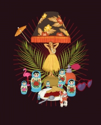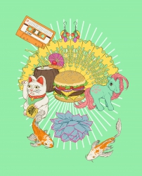 För några veckor sen hade jag möjligheten att ta en paus, och jag hade en tydlig idé om vad jag ville arbeta med. Mycket av det jag gör är väldigt illustrativt och föreställer oftast människor, vilket jag trivs med, men jag har många andra saker jag också är intresserad av, som stilleben, vintageprylar och barndomens populärkultur. Jag ville gärna ta lite ledigt från kroppar, ansikten och håruppsättningar och jobba med föremål, ”döda ting”, få studera dem närmare och arrangera dem på olika sätt. Jag är lätt materialistiskt lagd, älskar saker och att sortera, skapa system. Som jag nämnde är jag även svag för klassiska stilleben, men hur härligt det än är med fläskiga motiv av slokande rosbuketter, ostron och citroner så är det aldrig något jag själv skulle spänna upp en duk för. Istället funderade jag på en kollageteknik, ett digitalt klipp och klistra i Photoshop.