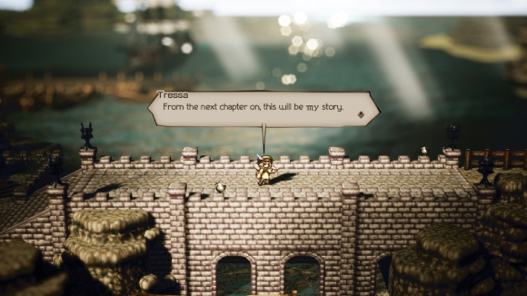 Om du som jag ägnade stora delar av dina tonår åt att spela japanska rollspel i SNES-emulatorer kommer du känna igen det inledande upplägget från Seiken Densetsu 3 – eller Secret of Mana 2 i engelsk fandubbning. Spelet kretsar kring åtta karaktärer (”octo”, du vet) vars öden flätas samman under spelets gång. Men det är du själv som väljer vilken du vill ska vara huvudkaraktär och den du börjar med. När klarat dennes första kapitel letar du upp nästa, och nästa, och nästa.