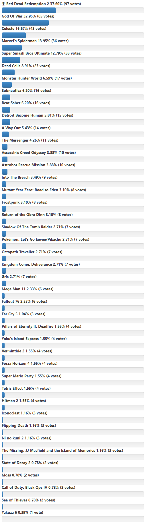 Det är inte bara Svamprikets redaktion som har förälskat sig i hästar och revolvrar. Det var en hård kamp mot krigsguden men Rockstars storslagna äventyr gick segrande när våra läsare fick rösta fram sitt egna GOTY 2018.